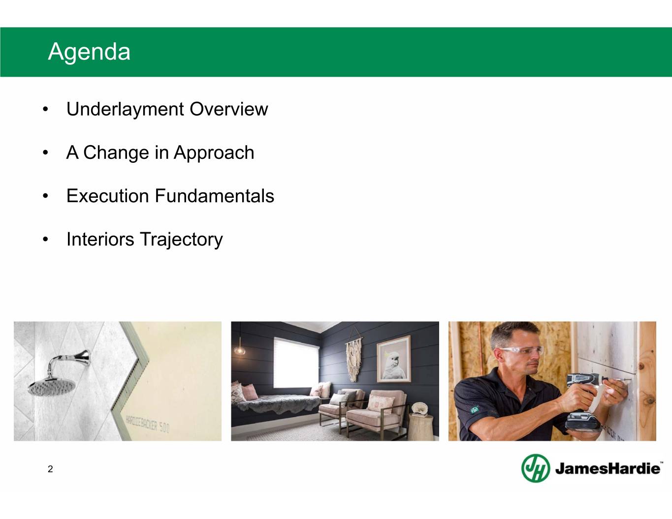 Agenda • Underlayment Overview • A Change in Approach • Execution Fundamentals • Interiors Trajectory 2