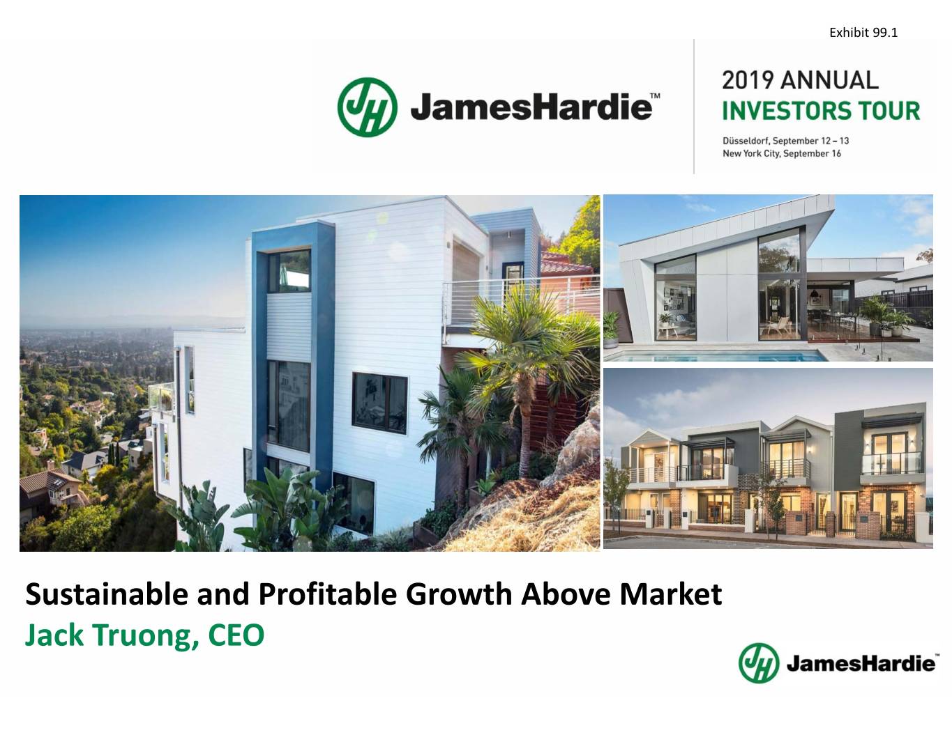 CAUTIONARY NOTE ON FORWARD-LOOKING STATEMENTS (continued) Words such as “believe,” “anticipate,” “plan,” “expect,” “intend,” “target,” “estimate,” “project,” “predict,” “forecast,” “guideline,” “aim,” “will,” “should,” “likely,” “continue,” “may,” “objective,” “outlook” and similar expressions are intended to identify forward-looking statements but are not the exclusive means of identifying such statements. Readers are cautioned not to place undue reliance on these forward-looking statements and all such forward- looking statements are qualified in their entirety by reference to the following cautionary statements. Forward-looking statements are based on the Company’s current expectations, estimates and assumptions and because forward-looking statements address future results, events and conditions, they, by their very nature, involve inherent risks and uncertainties, many of which are unforeseeable and beyond the Company’s control. Such known and unknown risks, uncertainties and other factors may cause actual results, performance or other achievements to differ materially from the anticipated results, performance or achievements expressed, projected or implied by these forward-looking statements. These factors, some of which are discussed under “Risk Factors” in Section 3 of the Form 20-F filed with the Securities and Exchange Commission on 21 May 2019 and subsequently amended on 8 August 2019, include, but are not limited to: all matters relating to or arising out of the prior manufacture of products that contained asbestos by current and former Company subsidiaries; required contributions to AICF, any shortfall in AICF and the effect of currency exchange rate movements on the amount recorded in the Company’s financial statements as an asbestos liability; the continuation or termination of the governmental loan facility to AICF; compliance with and changes in tax laws and treatments; competition and product pricing in the markets in which the Company operates; the consequences of product failures or defects; exposure to environmental, asbestos, putative consumer class action or other legal proceedings; general economic and market conditions; the supply and cost of raw materials; possible increases in competition and the potential that competitors could copy the Company’s products; reliance on a small number of customers; a customer’s inability to pay; compliance with and changes in environmental and health and safety laws; risks of conducting business internationally; compliance with and changes in laws and regulations; currency exchange risks; dependence on customer preference and the concentration of the Company’s customer base on large format retail customers, distributors and dealers; dependence on residential and commercial construction markets; the effect of adverse changes in climate or weather patterns; possible inability to renew credit facilities on terms favorable to the Company, or at all; acquisition or sale of businesses and business segments; changes in the Company’s key management personnel; inherent limitations on internal controls; use of accounting estimates; the integration of Fermacell into our business; and all other risks identified in the Company’s reports filed with Australian, Irish and US securities regulatory agencies and exchanges (as appropriate). The Company cautions you that the foregoing listof factors is not exhaustive and that other risks and uncertainties may cause actual results to differ materially from those referenced in the Company’s forward-looking statements. Forward-looking statements speak only as of the date they are made and are statements of the Company’s current expectations concerning future results, events and conditions. The Company assumes no obligation to update any forward-looking statements or information except as required by law. 3