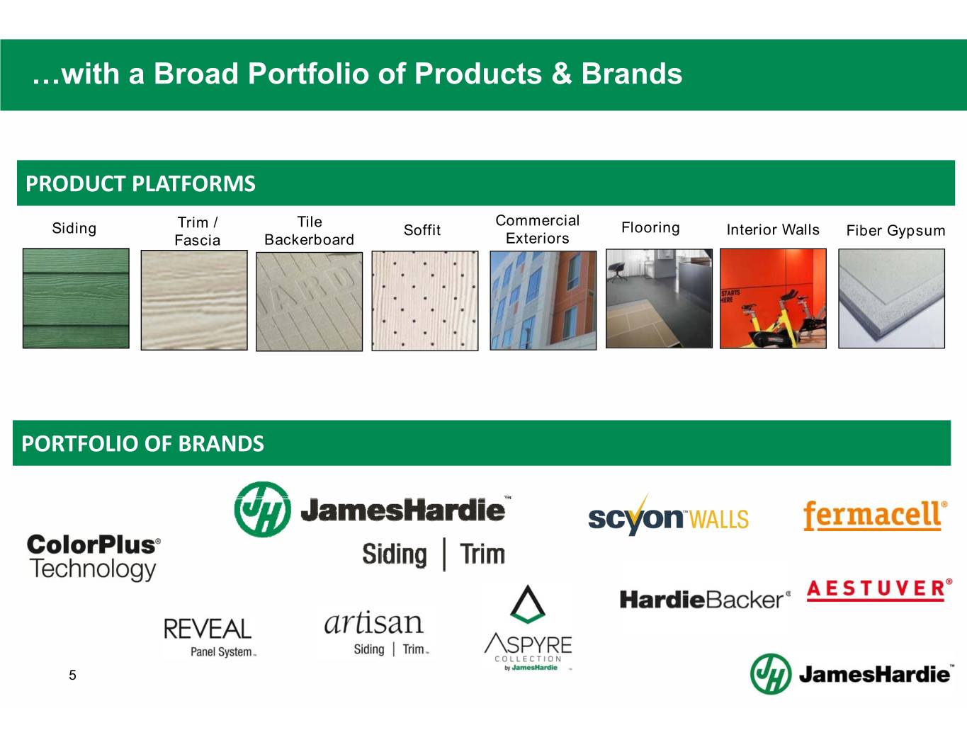 We Are an Organic Growth Company with Global Reach… EUROPE Net Sales $368MM EBIT $10MM EBIT % 2.7% # Employees 1,000 EBIT included Integration costs ASIA PACIFIC NORTH AMERICA Net Sales $447MM Net Sales $1,677MM EBIT $100MM EBIT $388MM EBIT % 22.3% EBIT % 23.1% # Employees 1,100 # Employees 2,700 FY 2019 Actual Results WORLDWIDE Net Sales $2,507MM EBIT $405MM EBIT % 16.1% 4 # Employees 4,800