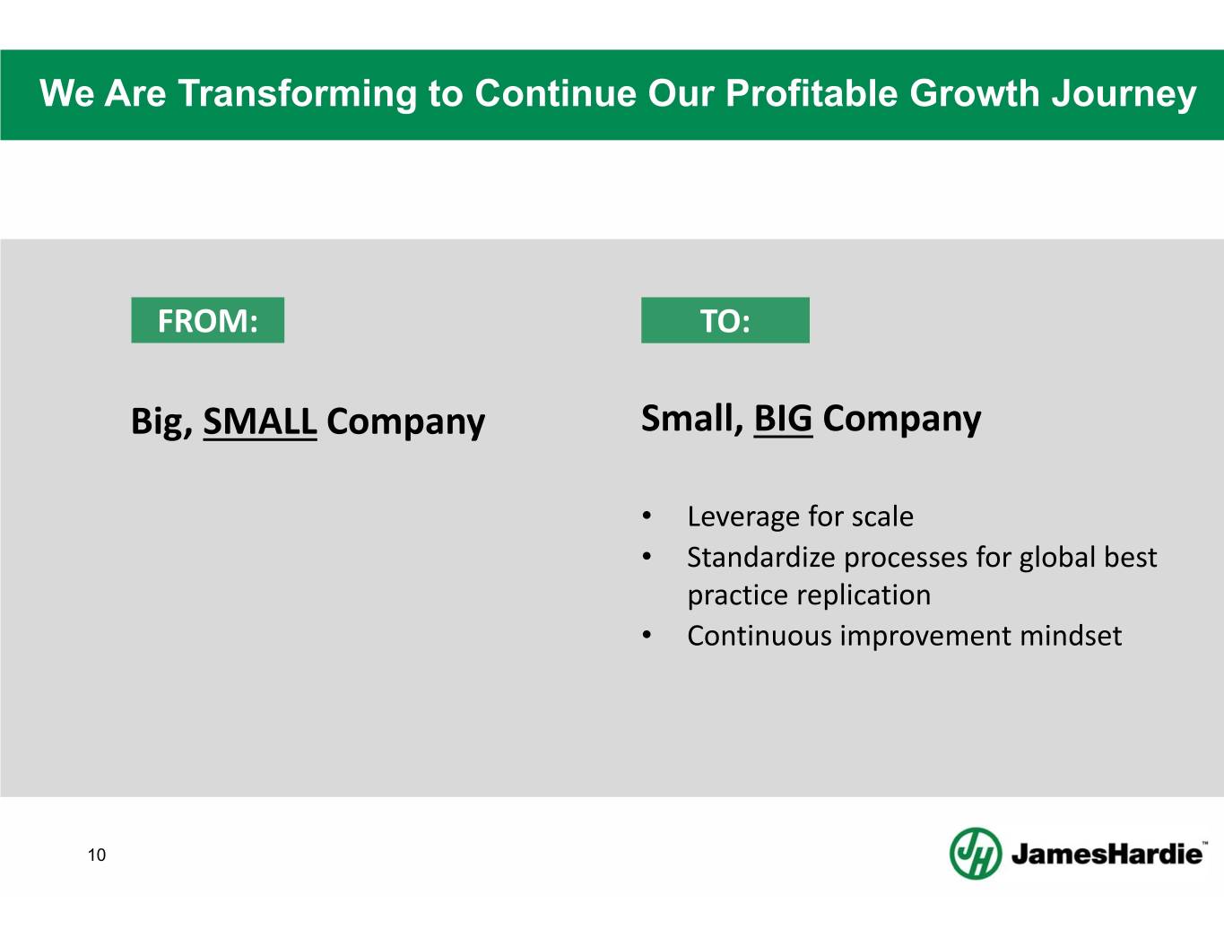 We Are Transforming to Continue Our Profitable Growth Journey FROM: TO: Big, SMALL Company Small, BIG Company • Leverage for scale • Standardize processes for global best practice replication • Continuous improvement mindset 10