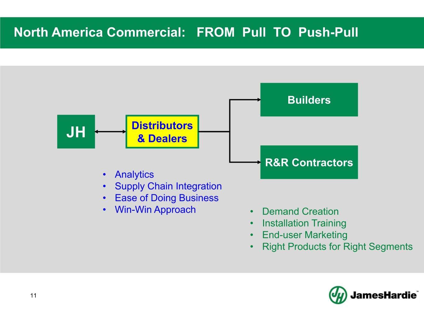 North America Commercial: FROM Pull TO Push-Pull Builders Distributors JH & Dealers R&R Contractors • Analytics • Supply Chain Integration • Ease of Doing Business • Win-Win Approach • Demand Creation • Installation Training • End-user Marketing • Right Products for Right Segments 11