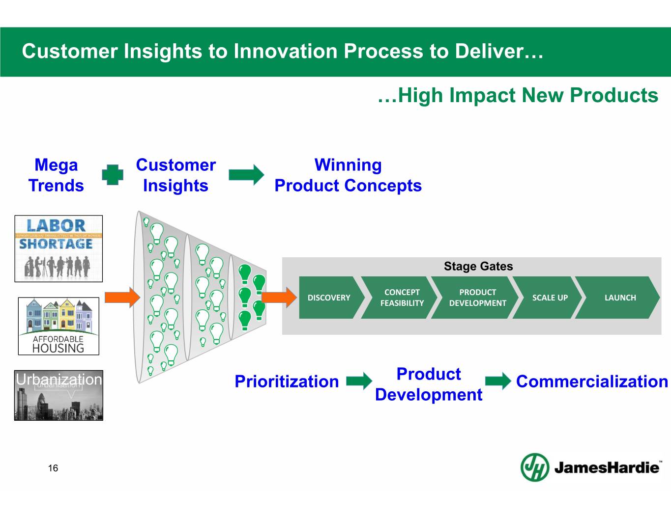 Customer Insights to Innovation Process to Deliver… …High Impact New Products Mega Customer Winning Trends Insights Product Concepts Stage Gates CONCEPT PRODUCT DISCOVERY SCALE UP LAUNCH FEASIBILITY DEVELOPMENT Urbanization Prioritization Product Commercialization Development 16