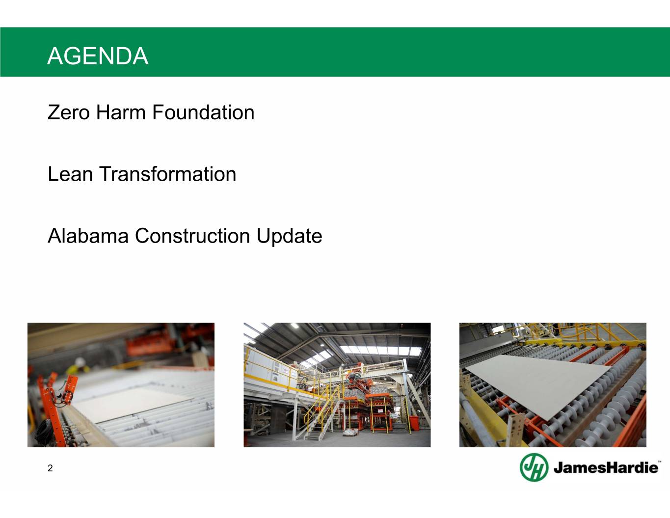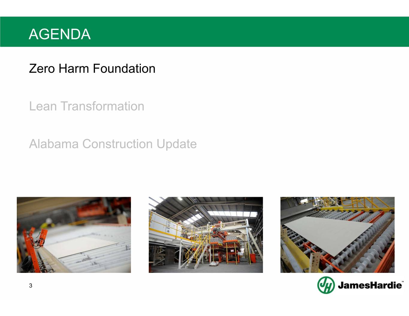 AGENDA Zero Harm Foundation Lean Transformation Alabama Construction Update 3