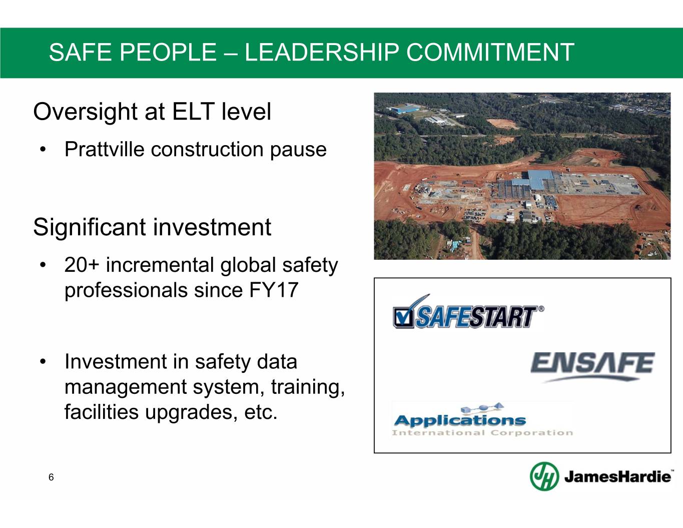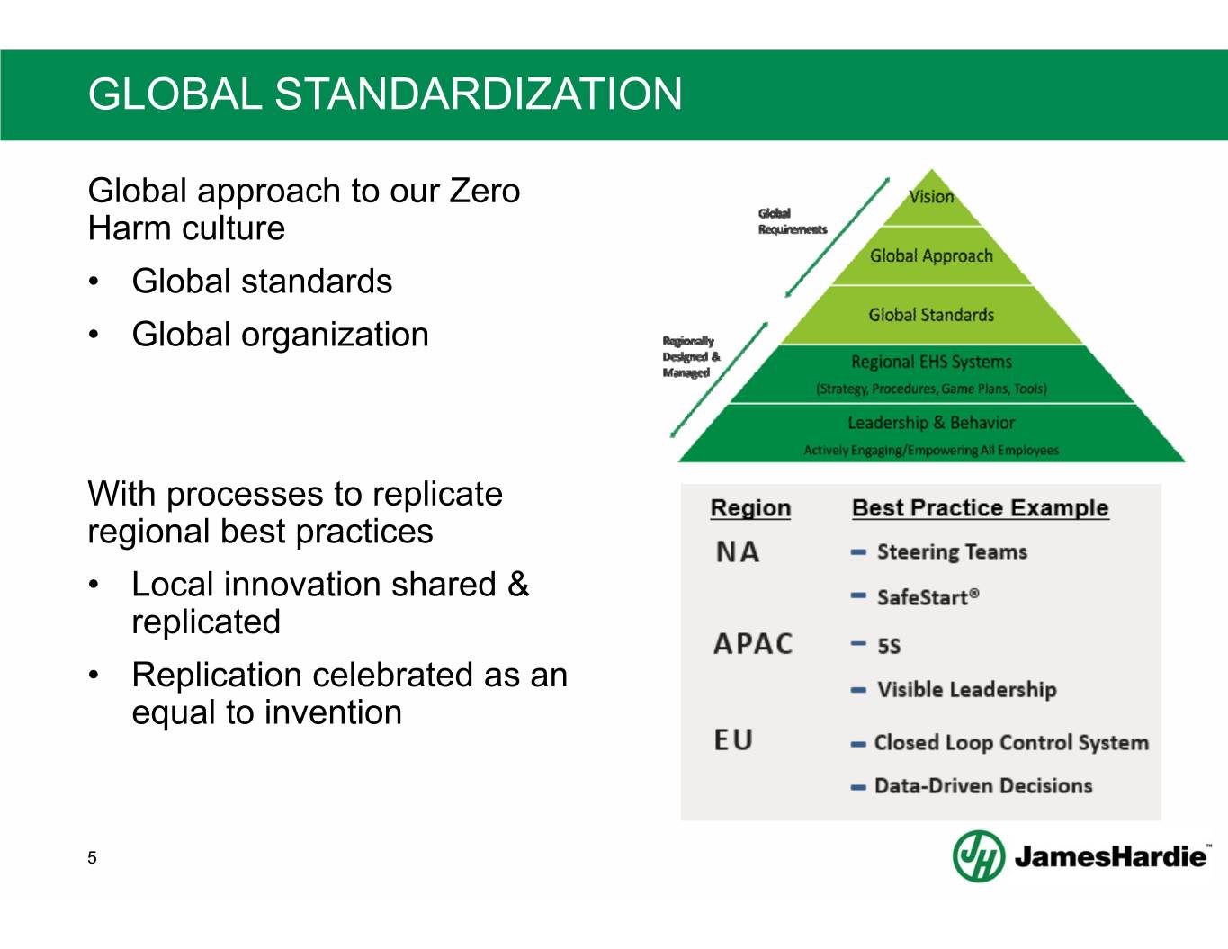 GLOBAL STANDARDIZATION Global approach to our Zero Harm culture • Global standards • Global organization With processes to replicate regional best practices • Local innovation shared & replicated • Replication celebrated as an equal to invention 5
