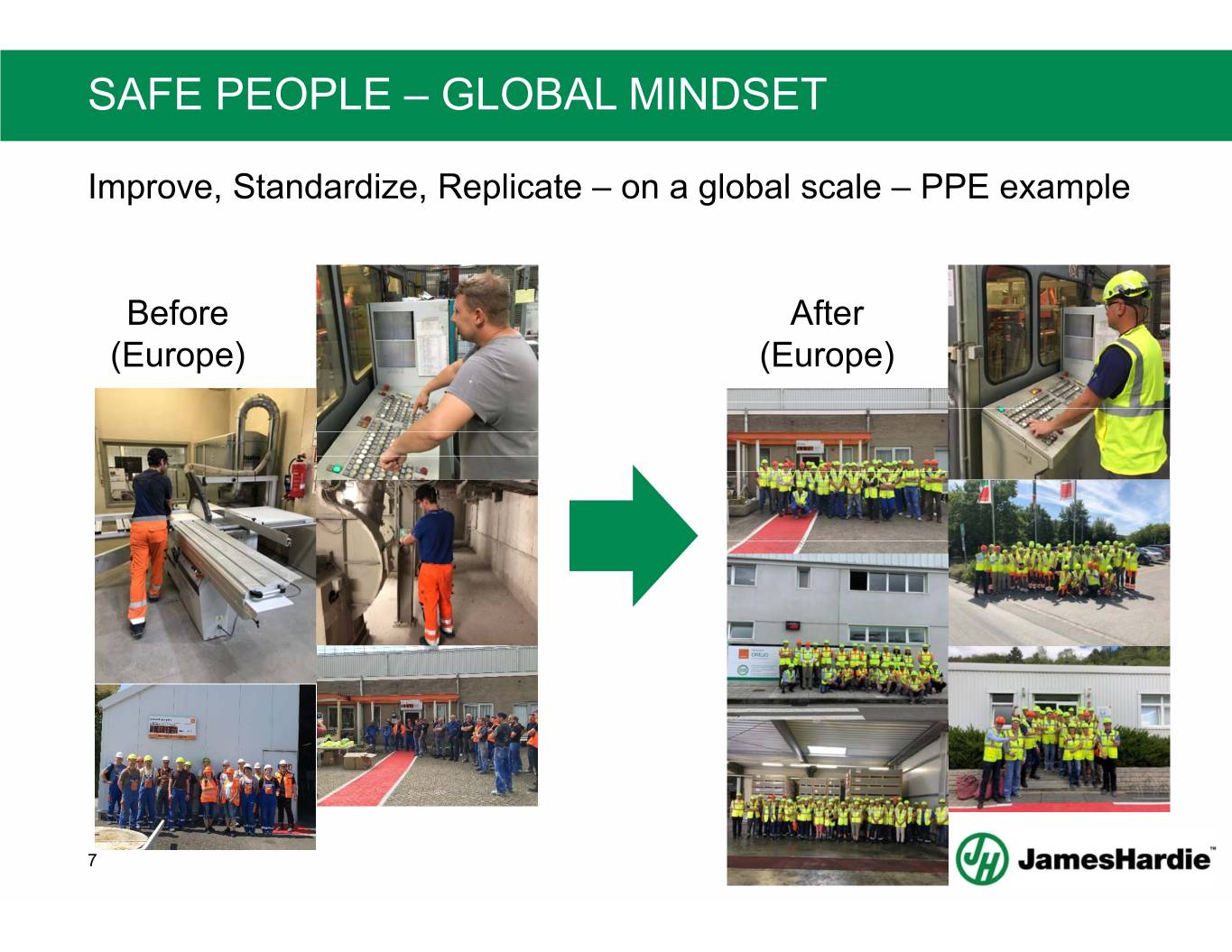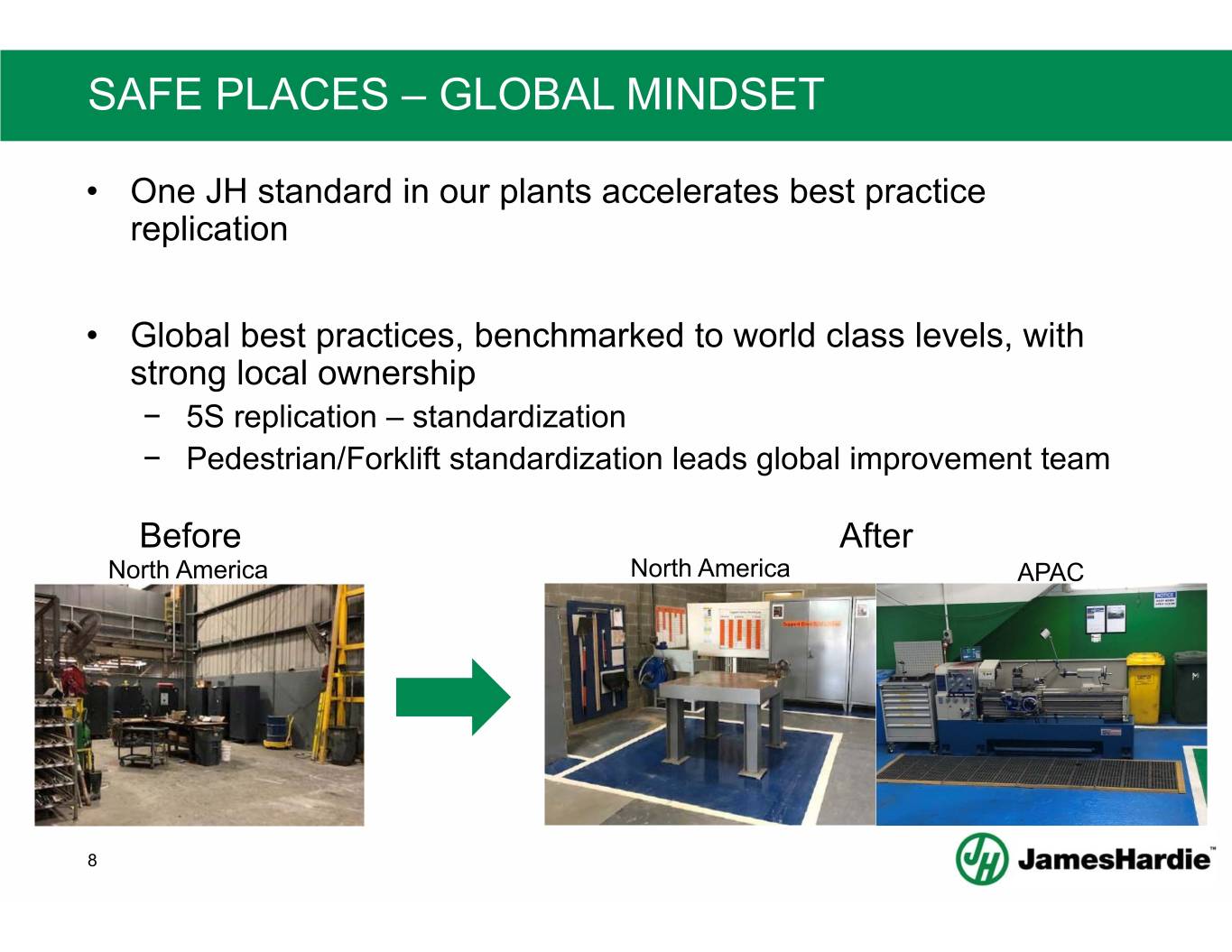 SAFE PEOPLE – GLOBAL MINDSET Improve, Standardize, Replicate – on a global scale – PPE example Before After (Europe) (Europe) 7