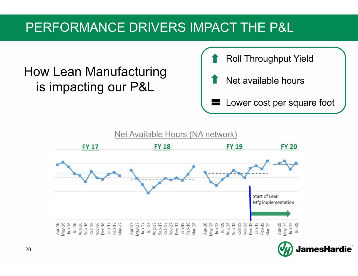ORGANIZATIONAL CAPABILITY Significant investments in organizational capability to enable the transformation… • NA Lean VP with a team of 10 Lean professionals • Lean roles created at all of our manufacturing facilities • All 2,000+ NA manufacturing employees will be trained in Lean by end of this fiscal year • Currently building out EU Lean organization 18