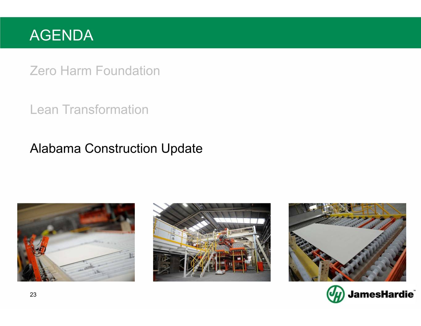 AGENDA Zero Harm Foundation Lean Transformation Alabama Construction Update 23