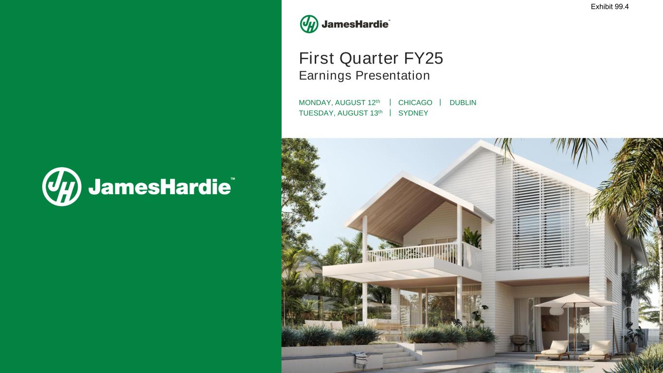 First Quarter FY25 Earnings Presentation MONDAY, AUGUST 12th TUESDAY, AUGUST 13th DUBLINCHICAGO SYDNEY | | | Exhibit 99.4