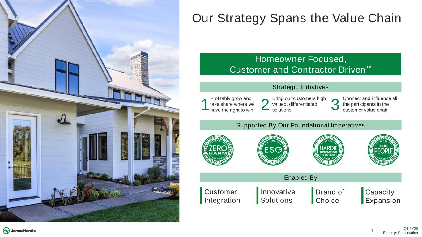 4 Q1 FY25 Earnings Presentation Key Messages Executing Our Strategy Delivering on Our Commitments Managing Decisively Investing for Future Growth Our Operational Focus Achieved Our Q1 Guidance Outperforming the Market Keeping Our Commitments A Solid Start to FY25 ✓ 751 mmsft North America Volume ✓ 31.2% North America EBIT Margin + $178mm Total Adjusted Net Income Delivering on Our Commitments Through A Challenging Market Delivering Value for Our Customers